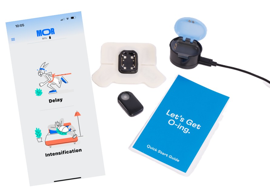 The MOR Starter Kit is an FDA cleared, app-enabled wearable designed to help men: